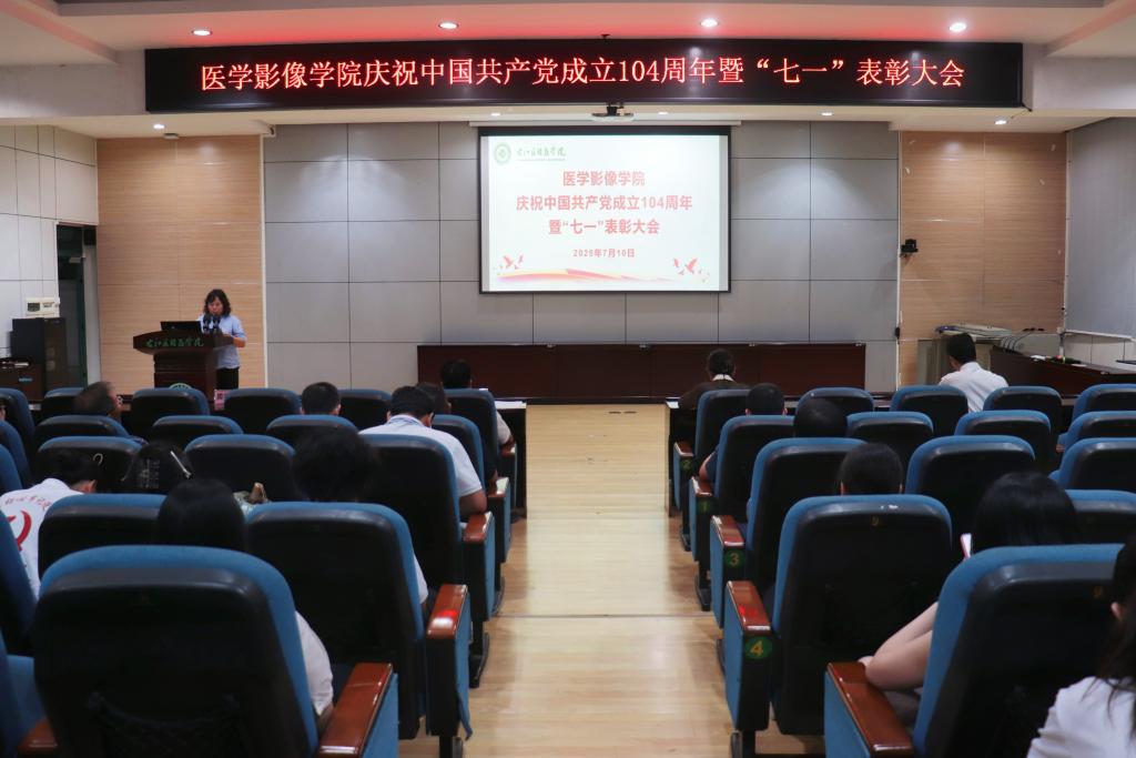 为弘扬先进典型、传承红色基因,激励全体党员以“影像赋能健康路,初心如磐启新程”的奋斗姿态开启新征程,7月10日下午,医学影像学院在5-101学术报告厅隆重召开庆祝中国共产党成立104周年暨“七一”表彰大会,学院全体党员齐聚一堂,共同见证这一庄严时刻。大会由学院党委副书记黄春苗主持。