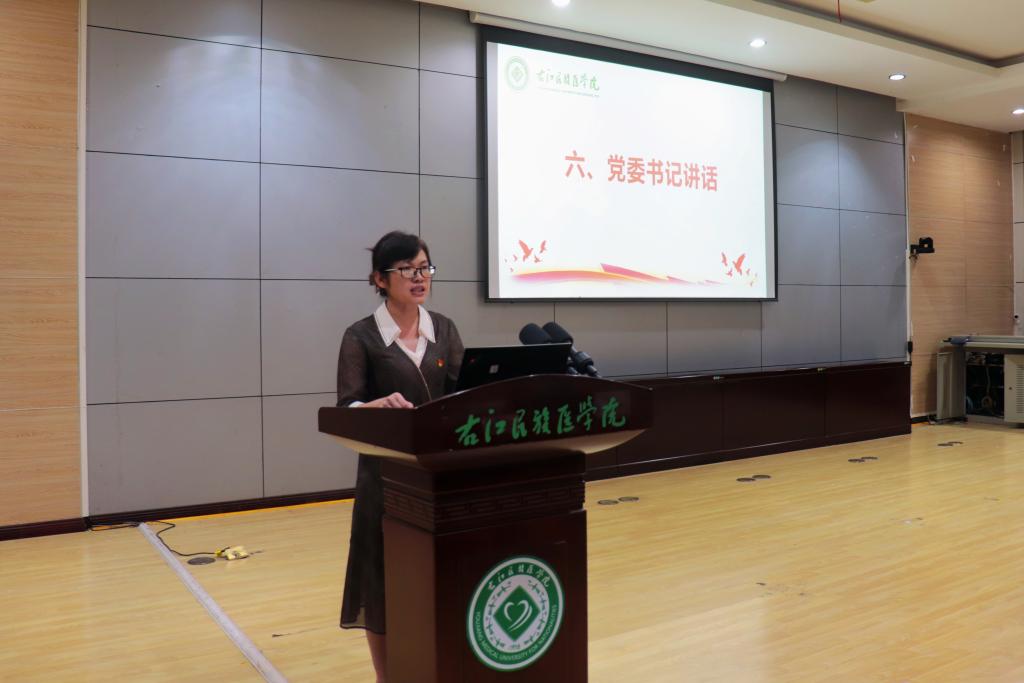 李丹在总结讲话中强调,在建党104周年之际表彰先进具有特殊意义,并提出三点要求:一是淬炼政治品格,要深学健康中国方略,将医者仁心融入血脉;二是坚持创新驱动,要构建“新医科”人才培养体系,服务医疗改革大局;三是筑牢战斗堡垒,营造风清气正的政治生态。她号召全体党员以实际行动践行誓言——争做开拓进取的“影像先锋”,甘当心系患者的“健康使者”,锻造让党放心的“医学铁军”。