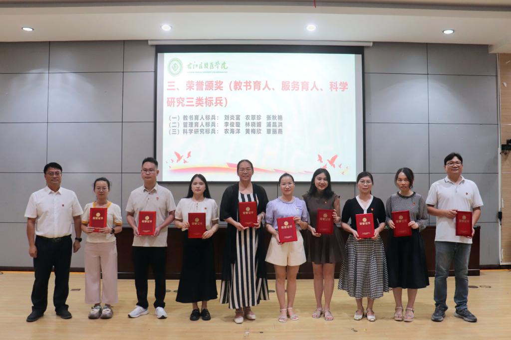 学院领导李丹、邓益斌、蓝常贡分别为获奖个人及集体代表颁奖。大会还特别设置“政治生日”仪式,为6名当月入党的党员集体庆生,学院党委书记李丹逐一赠送“政治生日”贺卡,传递党组织的关怀与嘱托。